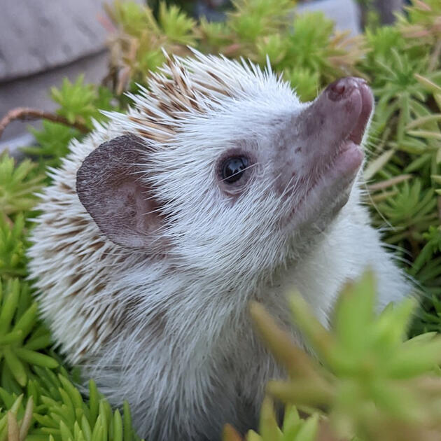 our first girl. she was up for sale in a facebook group. we drove 2 hours north florida to get her. she is very smol and very physically active. she loves to explore and she's an absolute fiend for worms!she can be difficult to handle because she's always on the move. always squirming around in your hands. she's not a very affectionate hedgehog but she loves to go on adventures.